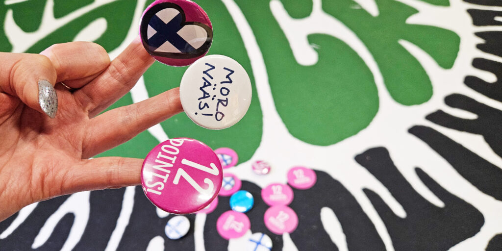 Tule tekemään itsellesi kannatuspinssi kevään viisuihin! FINLAND 12 POINTS!